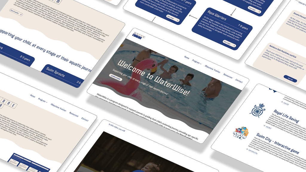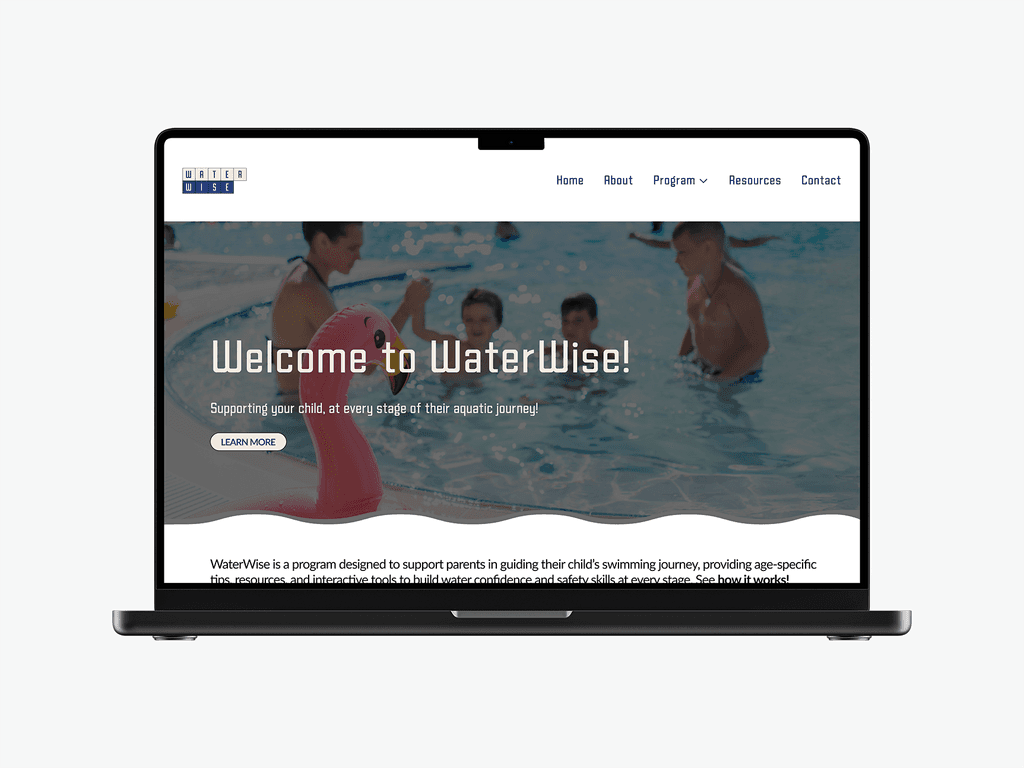 The WaterWise website is a central hub for parents looking to support their child’s water safety journey. It provides age-specific tips, video tutorials, and an overview of each developmental stage to help parents guide their child’s progress. The website complements the WaterWise app, offering parents in-depth resources and information while the app keeps track of milestones with tips for each stage. Together, they make it easy for parents to help their children build confidence and stay safe around water.